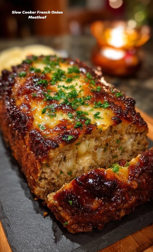 Here’s a FULL DETAILED RECIPE for Slow Cooker French Onion Meatloaf β€” tender, flavorful, and perfect for a hands-off dinner. πŸ½οΈπŸ§…