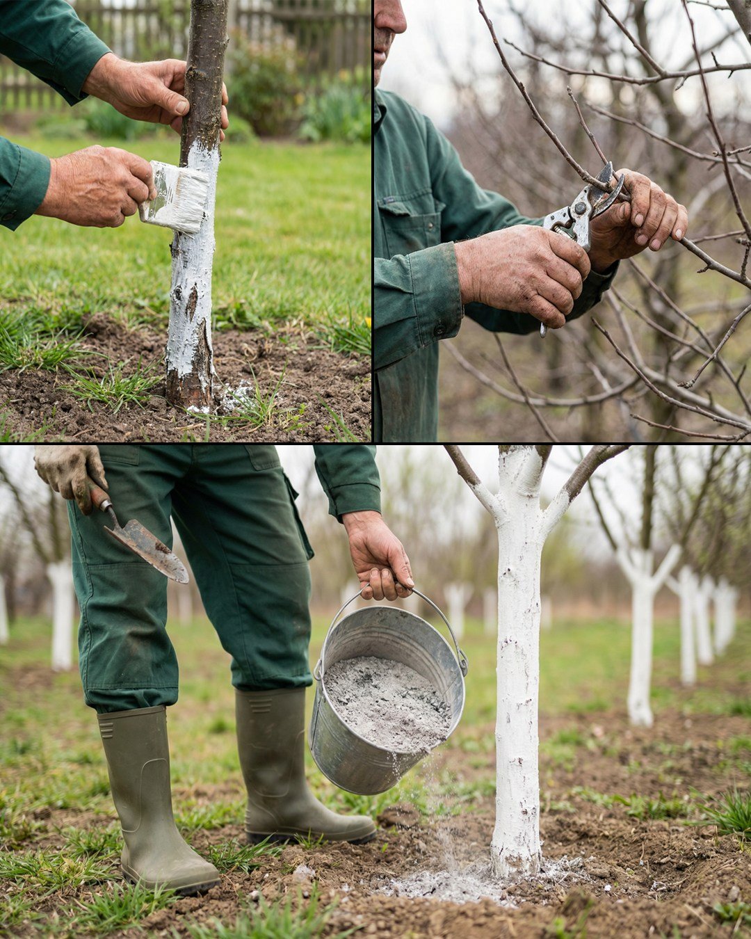 4. Whitewash the Trunks for Protection Against Spring Damage