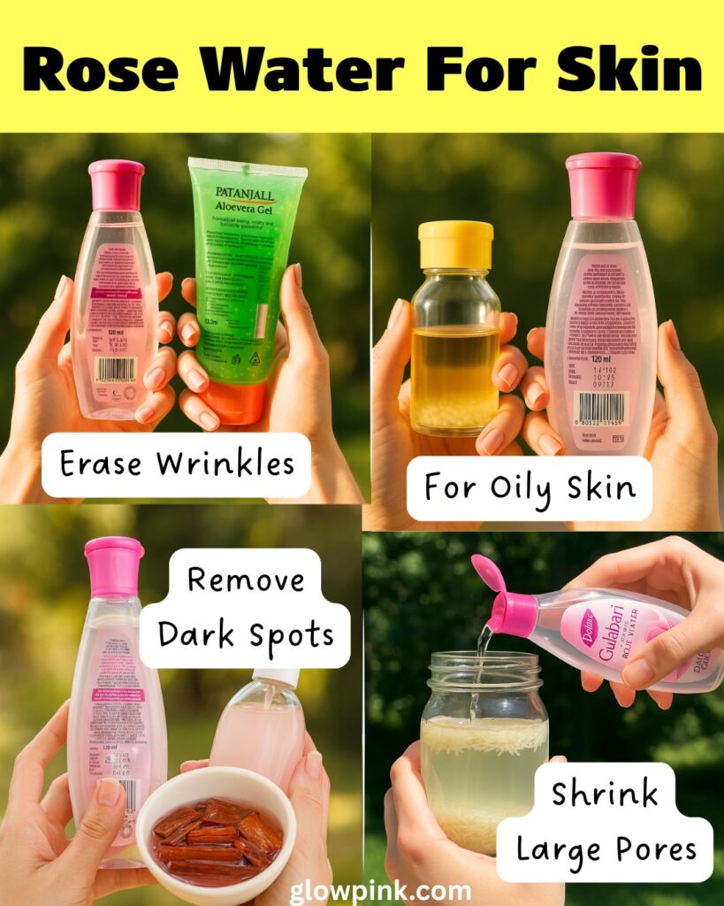 Here’s a collection of 7 powerful DIYs with rose water—perfect for reducing wrinkles, tightening large pores, controlling excess oil, fading dark spots, and more. All these remedies use natural, easily available ingredients and are safe for regular use.