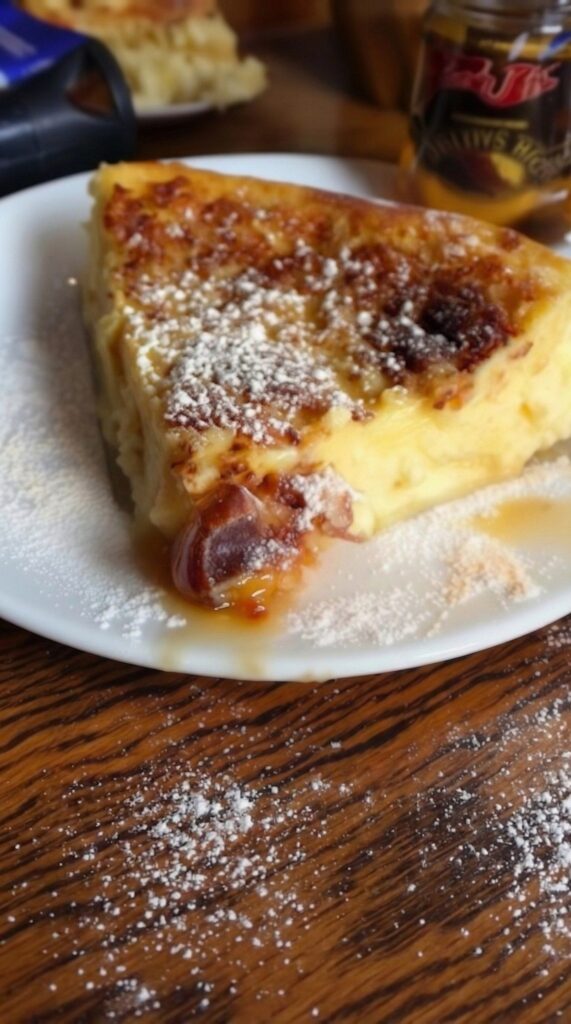 Pour the entire liquid mixture into a well-greased, round baking dish (pie pan).