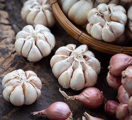 Garlic contains a compound called allicin, which forms when it’s crushed or chopped. Allicin is responsible for garlic’s distinctive smell—and its wide range of biological activities. Alongside allicin, garlic also offers sulfur compounds, antioxidants, and minerals like manganese and selenium that may support overall health.