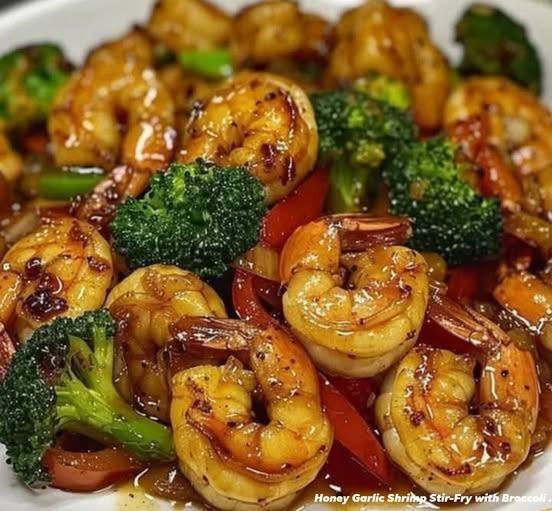 Honey Garlic Shrimp Stir-Fry with Broccoli .