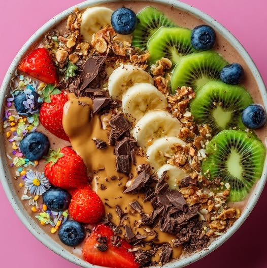 Here’s a rich and nourishing Chocolate Smoothie Bowl with Fresh Fruits β€” creamy, chocolatey, and loaded with toppings for a perfect breakfast or snack. πŸ«πŸŒπŸ“πŸ₯­