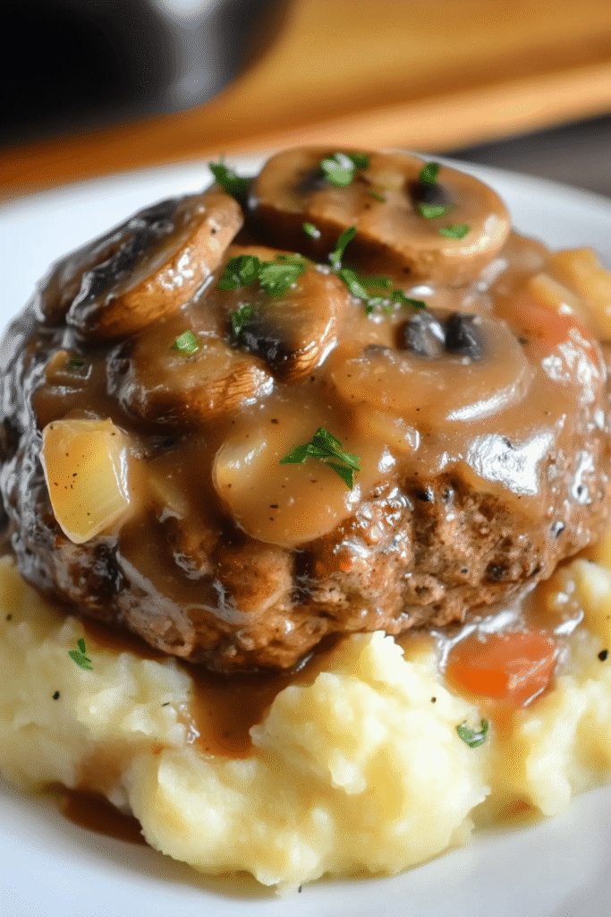 5. How long should I simmer the gravy with the patties? Once you return the beef to the gravy, simmer it gently for about 10–15 minutes. This ensures the patties are cooked completely through and have absorbed some of that rich fungi gravy flavor.