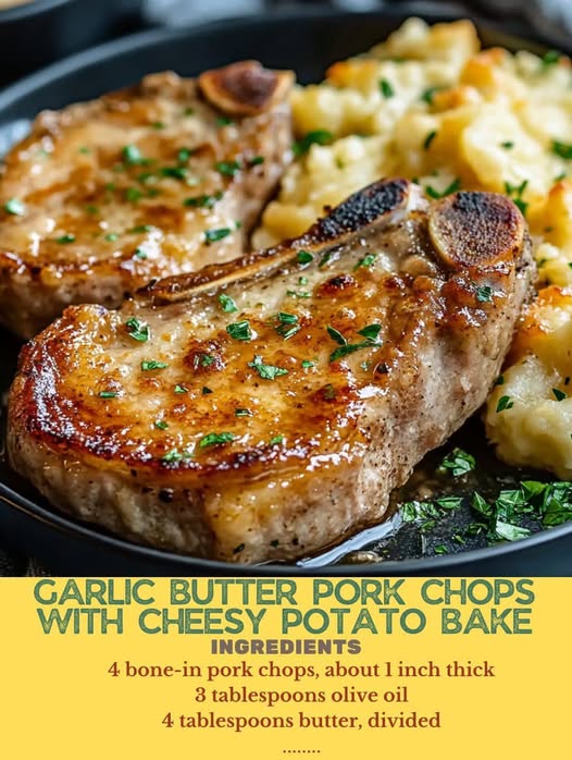 Garlic Butter Pork Chops and Creamy Potato Bake