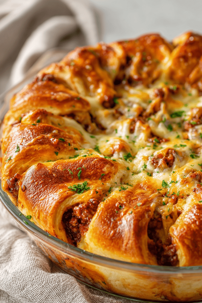 - Bake uncovered for 20–25 minutes, until the crescent layer is golden and the cheese is bubbly.