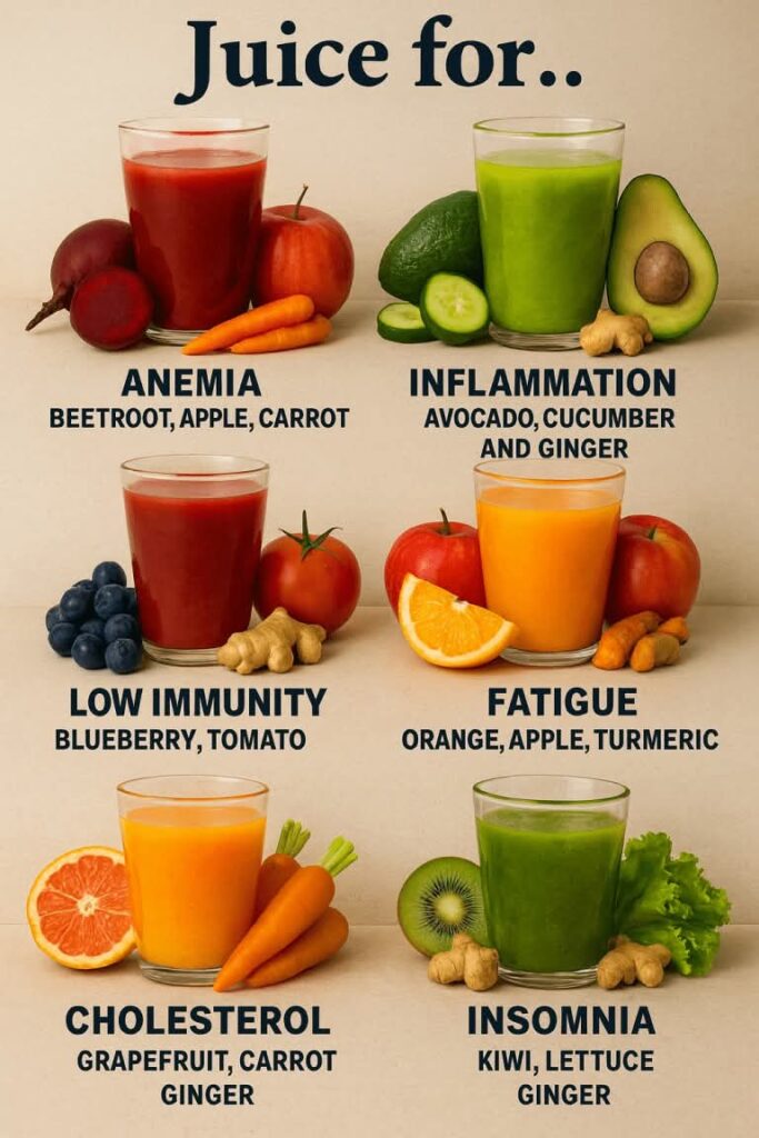 High cholesterol can silently harm your heart. This crisp, fiber-rich juice supports cardiovascular health and helps lower bad cholesterol naturally. Ingredients: