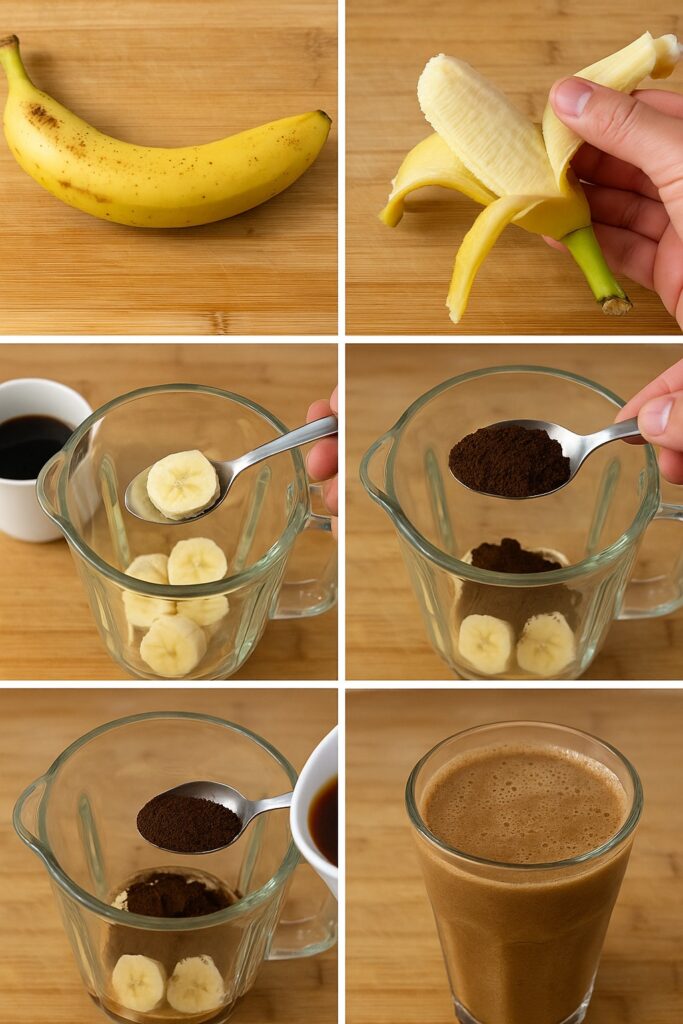 - Place 3 banana peels in a blender and then pour the coffee grounds over them.