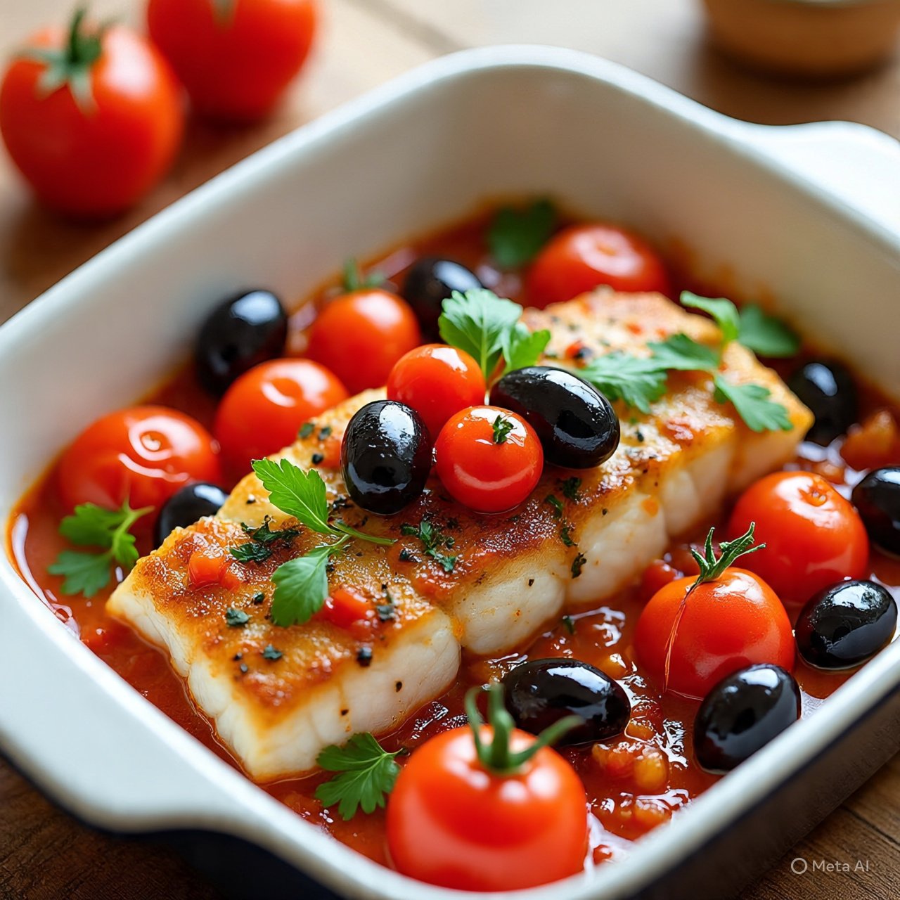 This Baked Cod with Tomatoes, Olives & Herbs embodies the heart of coastal Mediterranean cuisine — a harmony of land and sea, where simplicity meets bold flavor. From the Greek islands to the Amalfi coast, fish baked with tomatoes and olives is a beloved dish enjoyed in seaside tavernas and family kitchens alike.
