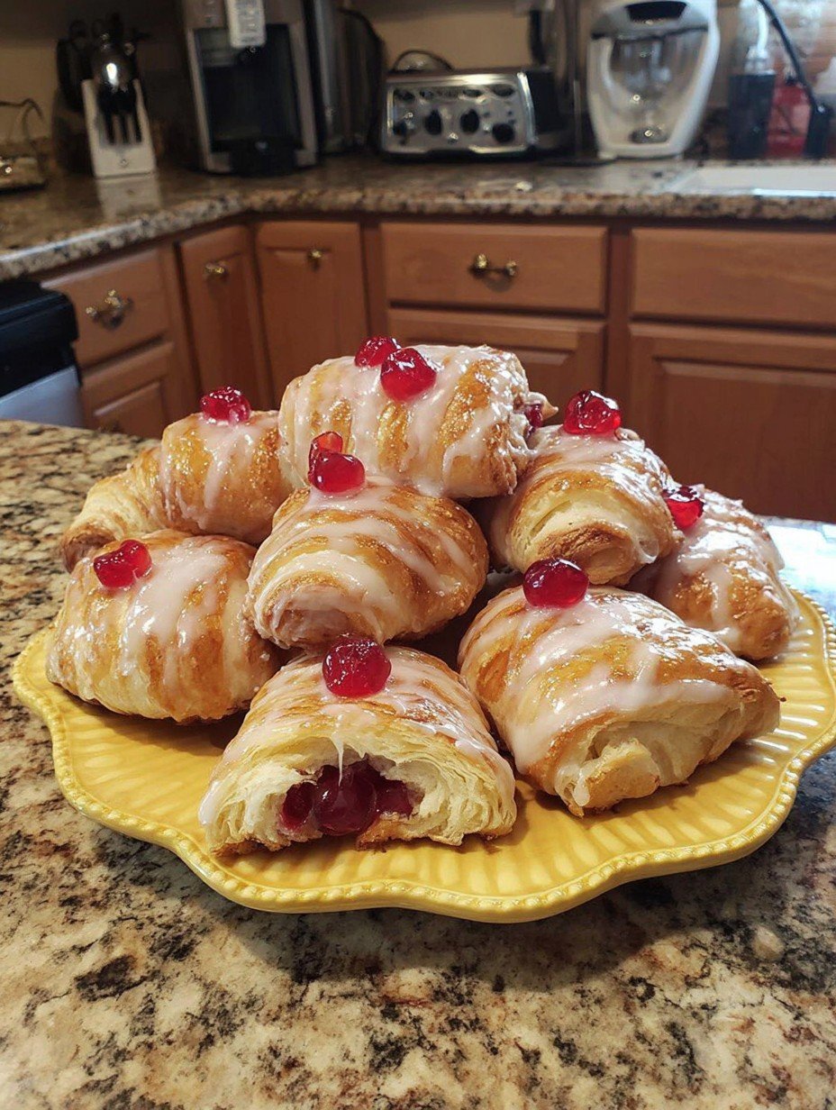 Top each pastry with a cherry for decoration. Serve warm or at room temperature.