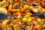 - Once the meat is cooked, toss in the bell pepper, oyster mushrooms, and diced tomato. Cook these together until they are softened.