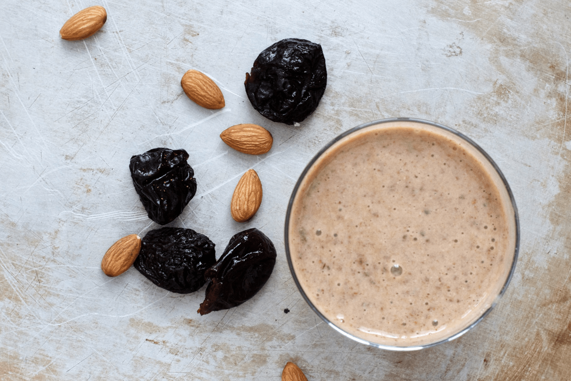 Start tomorrow morning: Toss ½ cup oats, 6 prunes, 1 cup milk of choice, and cinnamon in the blender. Drink while it’s still frothy. That’s it.