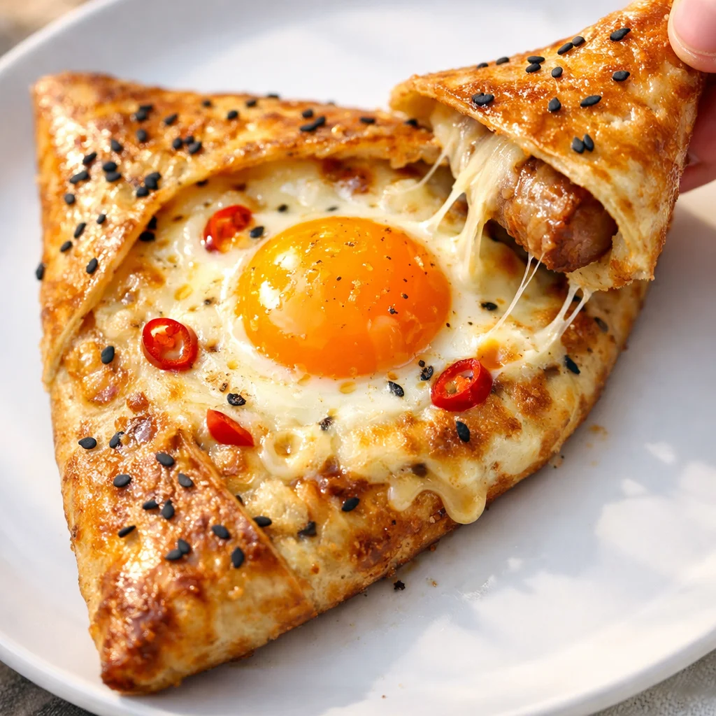 The Golden Touch: Brush the “rim” (the folded tortilla parts) with the egg yolk wash. This gives it that deep golden, pastry-like finish. Sprinkle with black sesame seeds.