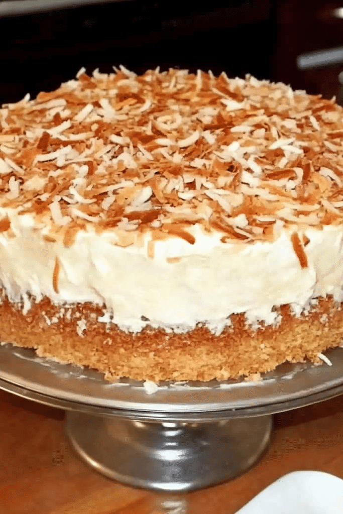 The process starts with preparing the fluffy layers by creaming the dry cake ingredients with the fats and then slowly incorporating the wet ingredients, including the tropical nut liquid. The layers are baked until golden. The frosting is then made by gently heating egg whites and sweetener over a steaming pot before whipping them into a meringue, into which the soft dairy fat and remaining flavorings are beaten. Finally, the cooled layers are sliced, stacked with the rich frosting, and covered completely with the crunchy toasted flakes.